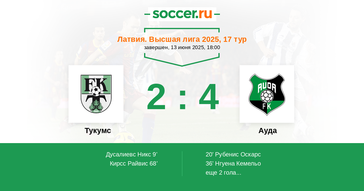 Тукумс - Ауда: обзор матча 13 июня 2025