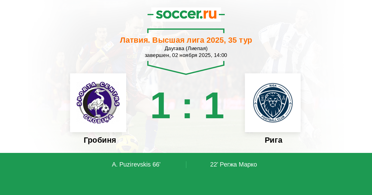 Гробиня - Рига: обзор матча 2 ноября 2025