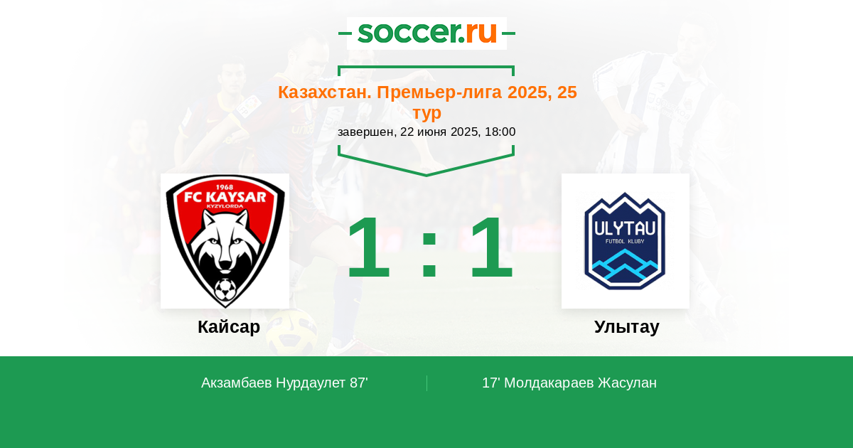 Кайсар - Улытау: обзор матча 22 июня 2025