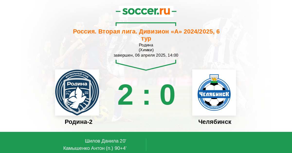 Родина-2 - Челябинск: обзор матча 6 апреля 2025