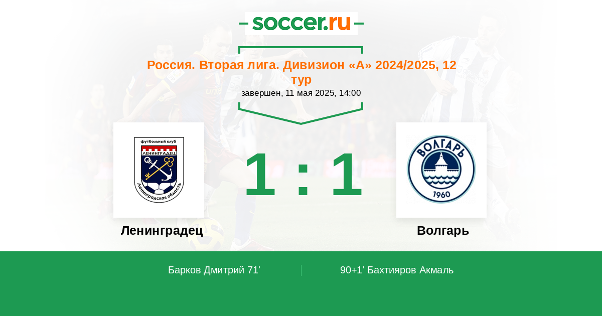 Ленинградец - Волгарь: обзор матча 11 мая 2025