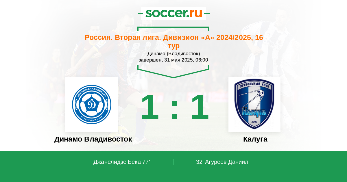 Динамо Владивосток - Калуга: обзор матча 31 мая 2025