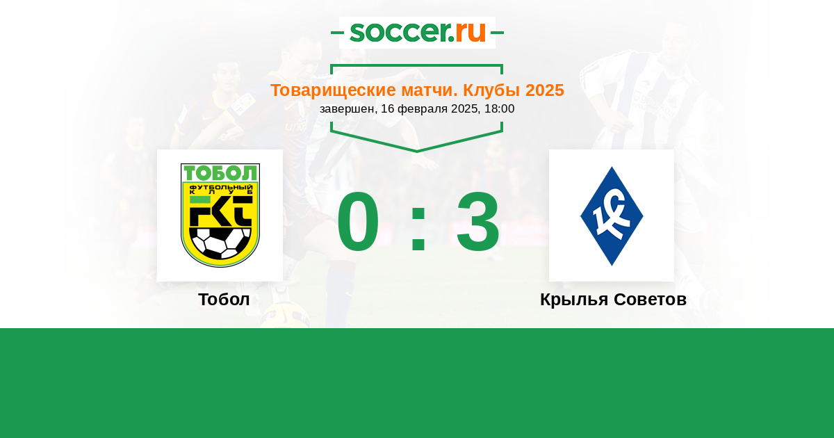 Тобол - Крылья Советов: обзор матча 16 февраля 2025