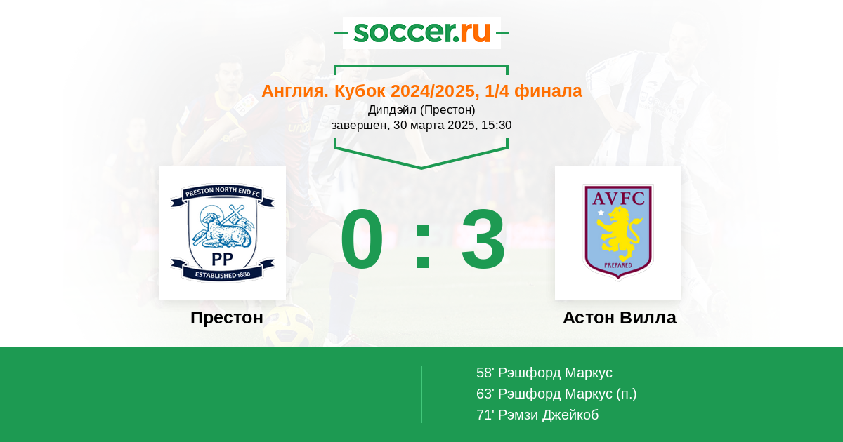 Престон - Астон Вилла: обзор матча 30 марта 2025