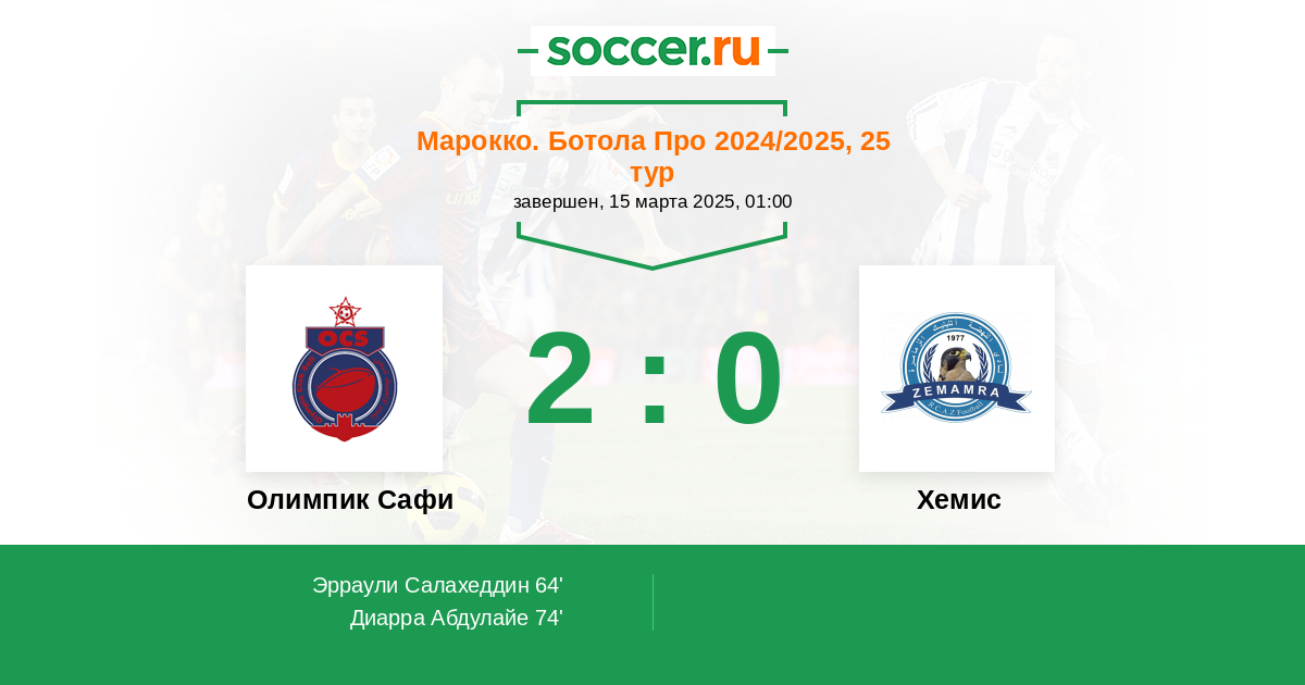 Олимпик Сафи - Хемис: обзор матча 15 марта 2025