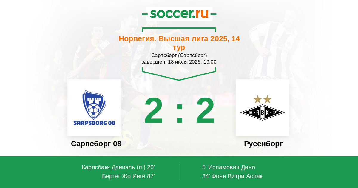 Сарпсборг 08 - Русенборг: обзор матча 18 июля 2025