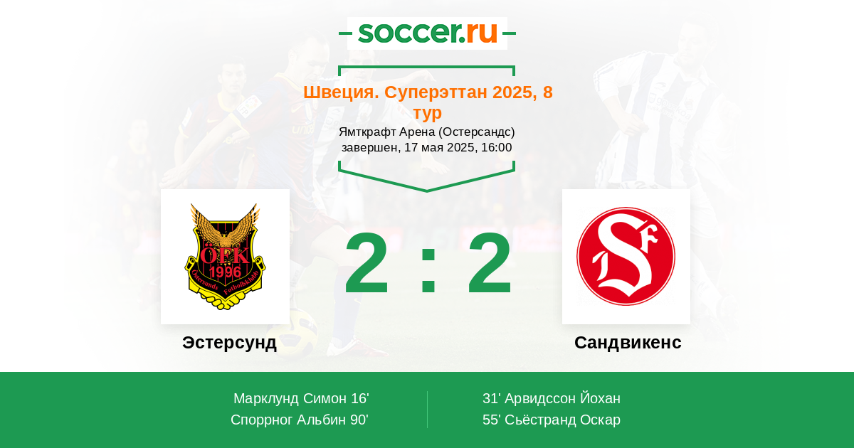 Эстерсунд - Сандвикенс: обзор матча 17 мая 2025