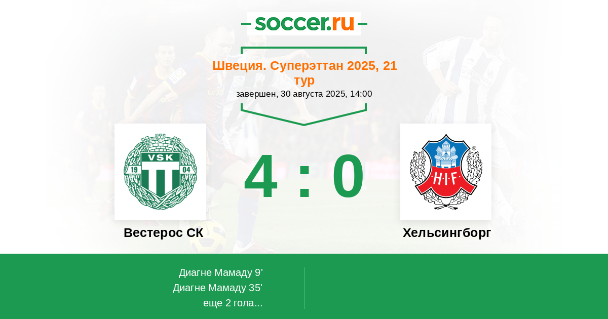 Вестерос СК - Хельсингборг: обзор матча 30 августа 2025
