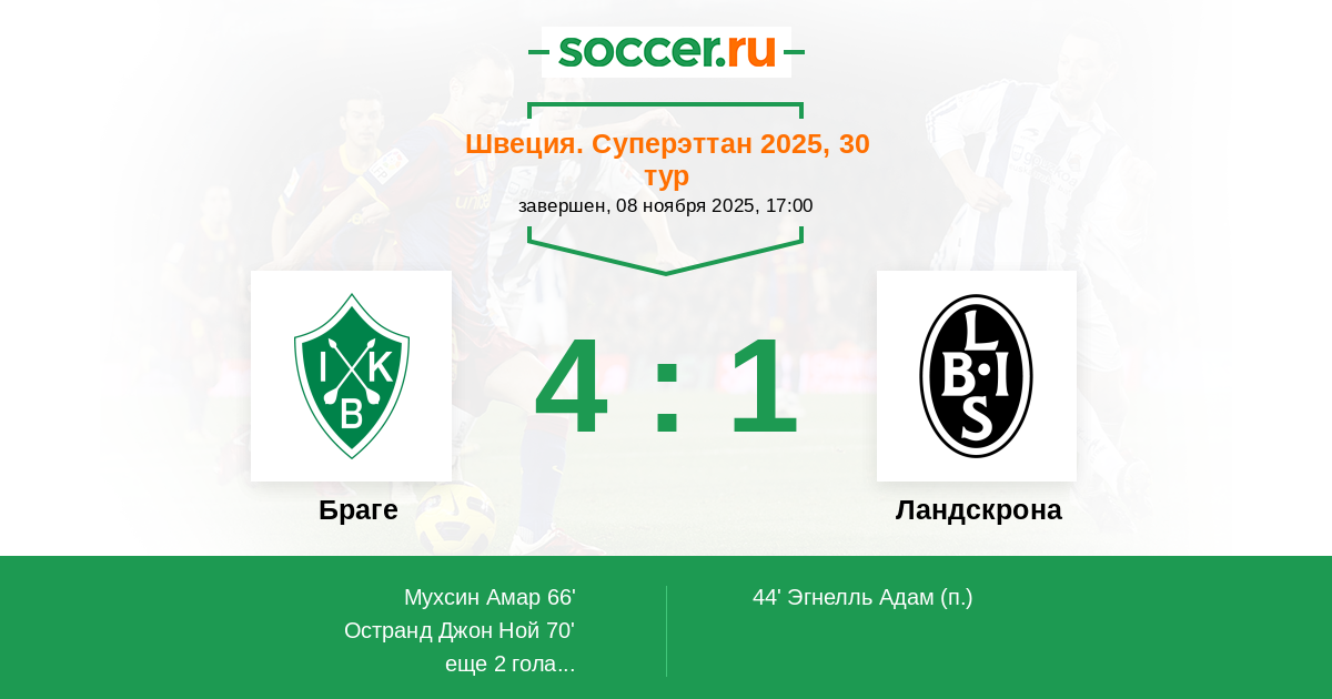 Браге - Ландскрона: обзор матча 8 ноября 2025