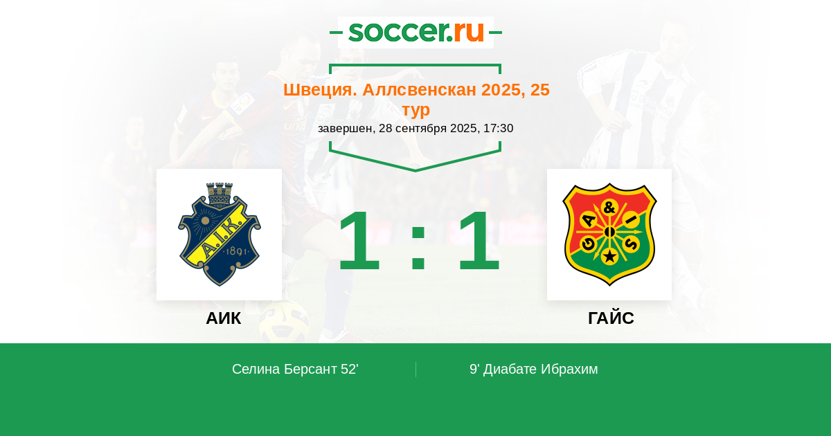 АИК - ГАЙС: обзор матча 28 сентября 2025