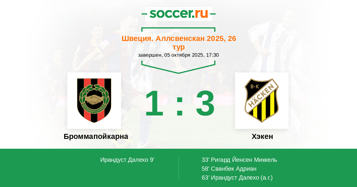 Броммапойкарна - Хэкен: обзор матча 5 октября 2025