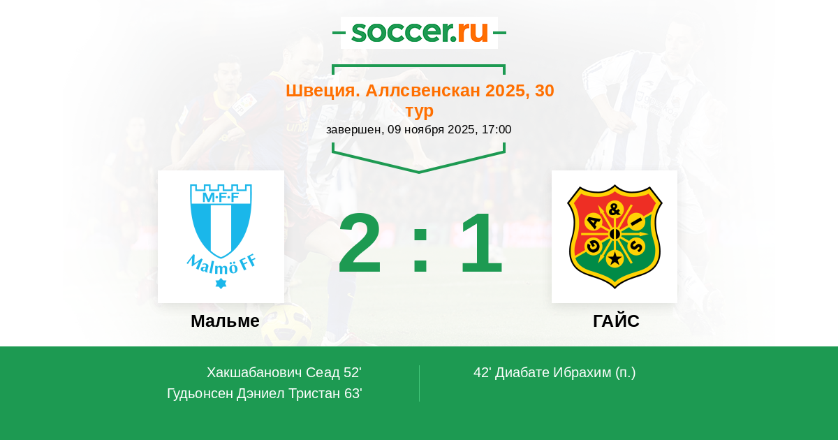 Мальме - ГАЙС: обзор матча 9 ноября 2025