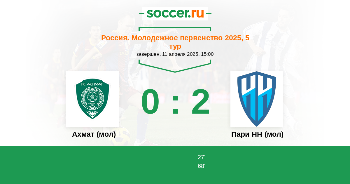 Ахмат (мол) - Пари НН (мол): обзор матча 11 апреля 2025