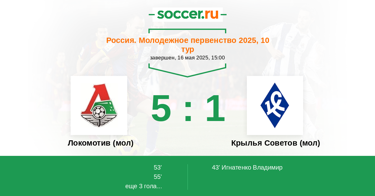 Локомотив (мол) - Крылья Советов (мол): обзор матча 16 мая 2025