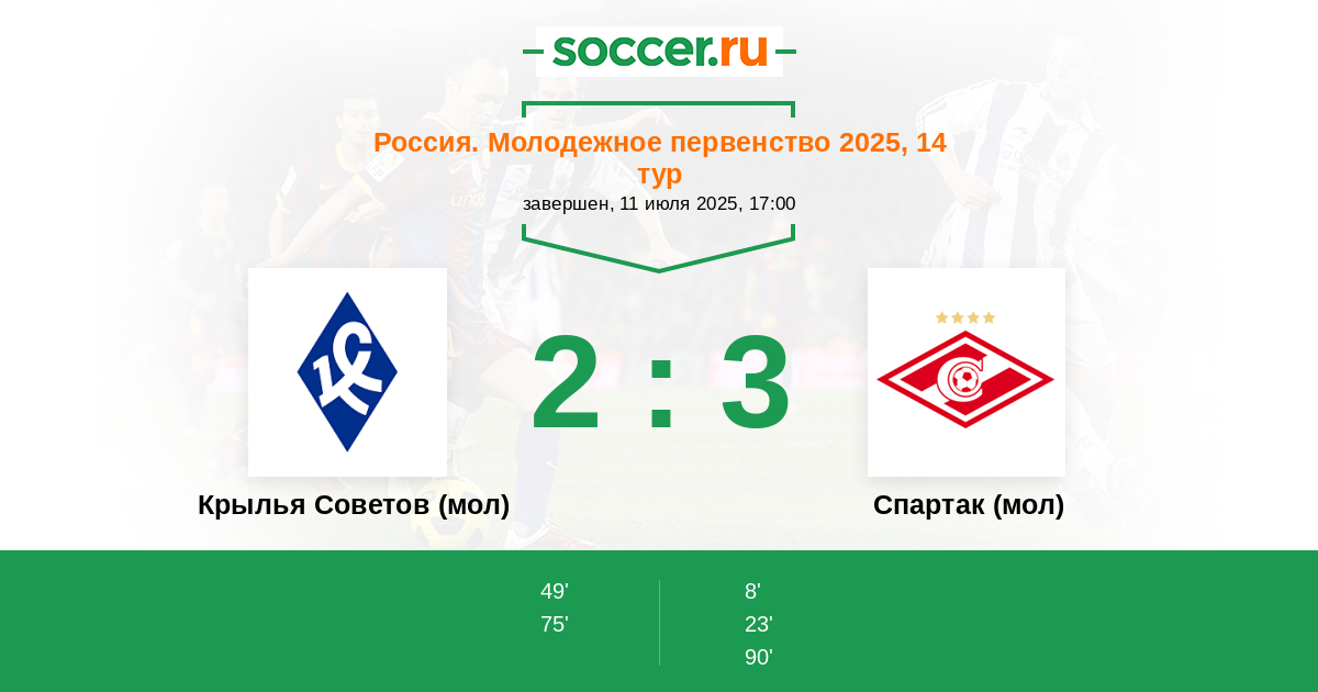 Крылья Советов (мол) - Спартак (мол): обзор матча 11 июля 2025