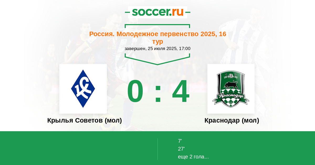 Крылья Советов (мол) - Краснодар (мол): обзор матча 25 июля 2025