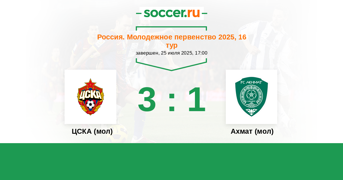 ЦСКА (мол) - Ахмат (мол): обзор матча 25 июля 2025