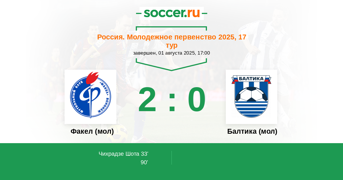 Факел (мол) - Балтика (мол): обзор матча 1 августа 2025