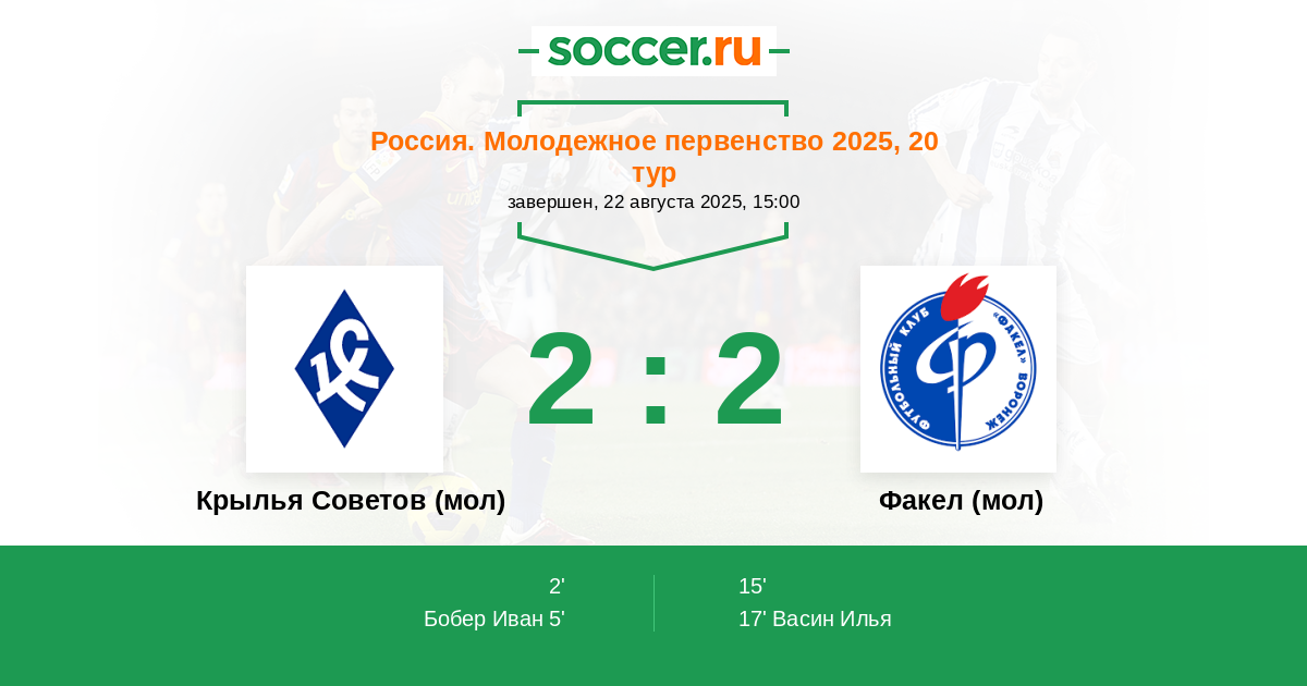 Крылья Советов (мол) - Факел (мол): обзор матча 22 августа 2025