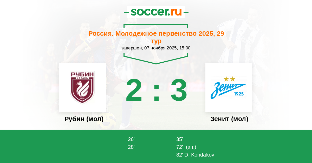 Рубин (мол) - Зенит (мол): обзор матча 7 ноября 2025