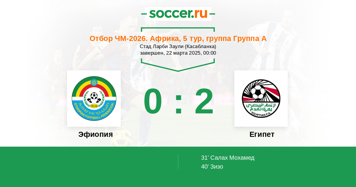 Эфиопия - Египет: обзор матча 22 марта 2025