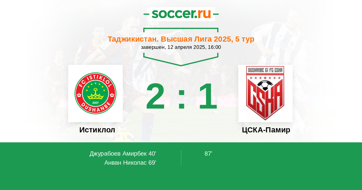 Истиклол - ЦСКА-Памир: обзор матча 12 апреля 2025