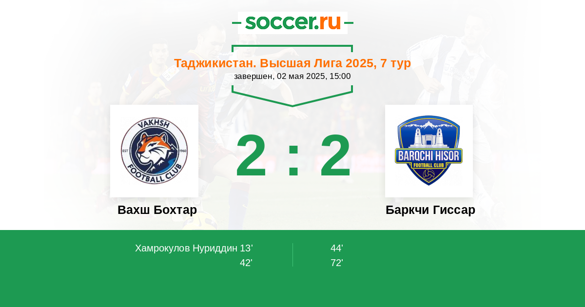Вахш Бохтар - Баркчи Гиссар: обзор матча 2 мая 2025