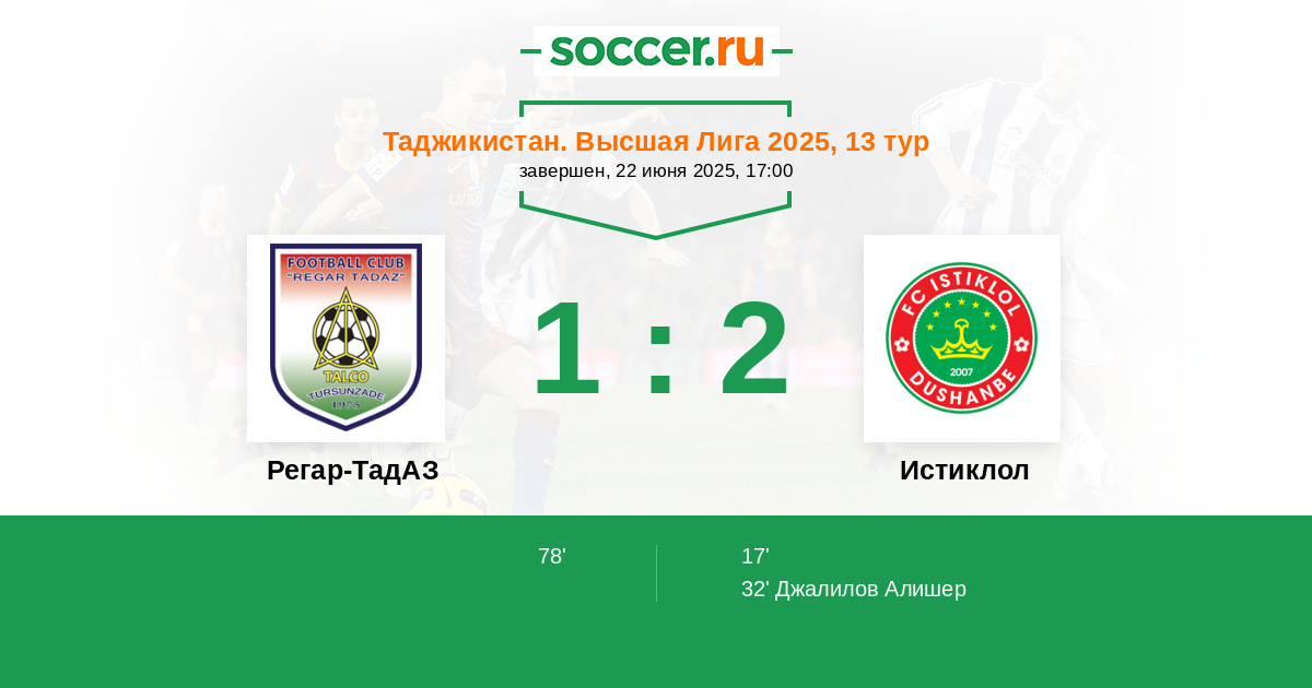 Регар-ТадАЗ - Истиклол: обзор матча 22 июня 2025