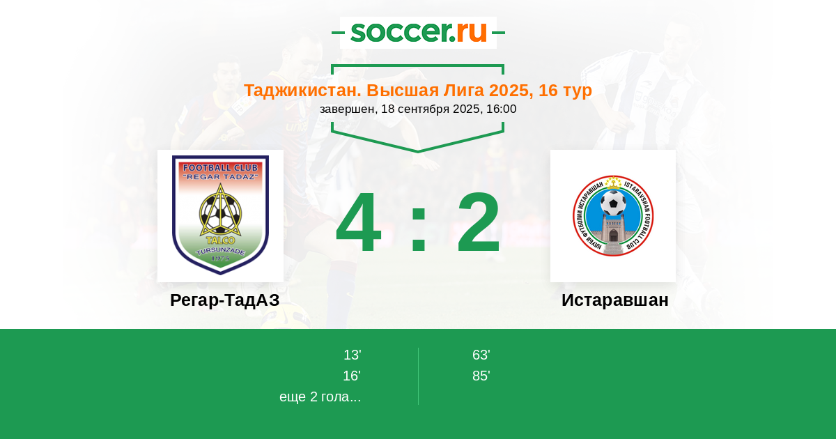 Регар-ТадАЗ - Истаравшан: обзор матча 18 сентября 2025