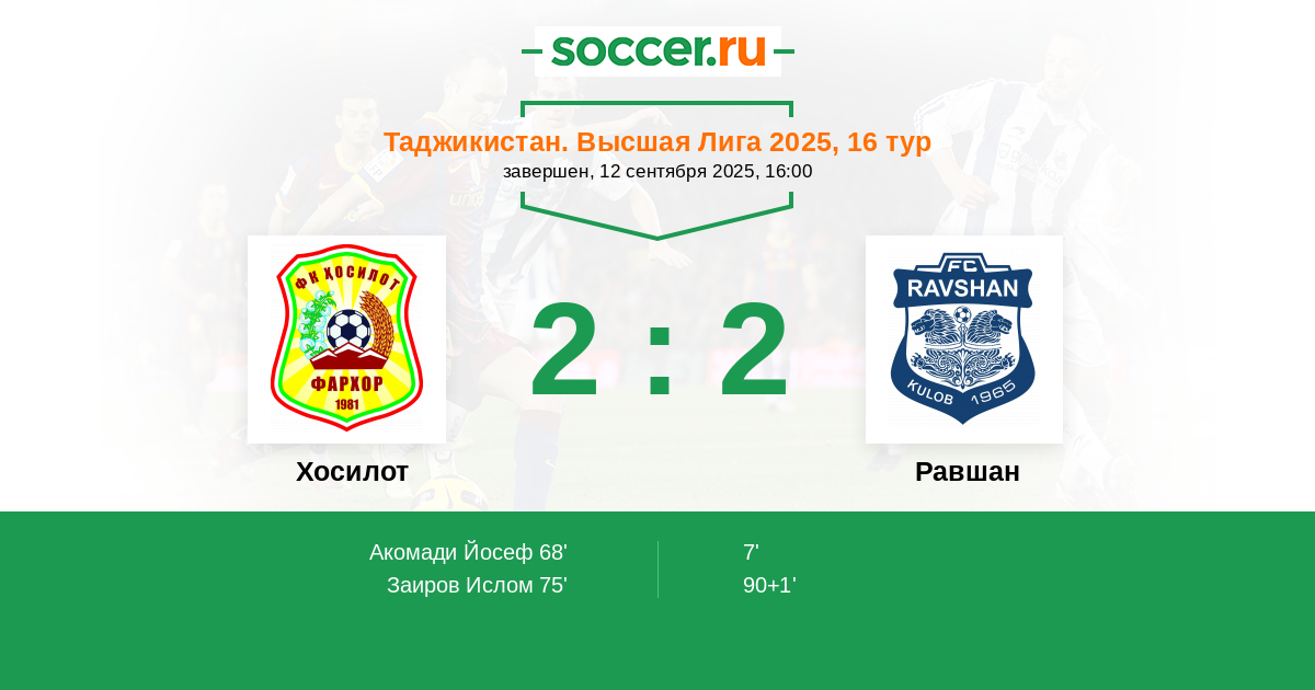 Хосилот - Равшан: обзор матча 12 сентября 2025