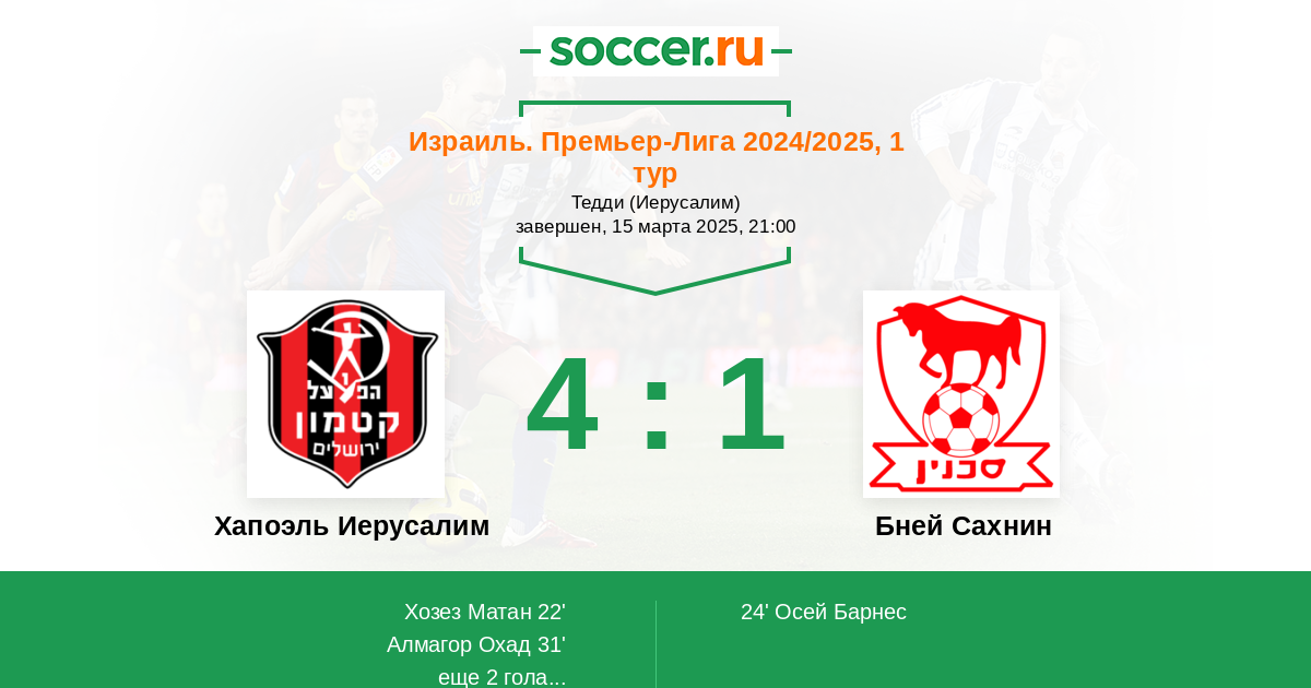 Хапоэль Иерусалим - Бней Сахнин: обзор матча 15 марта 2025