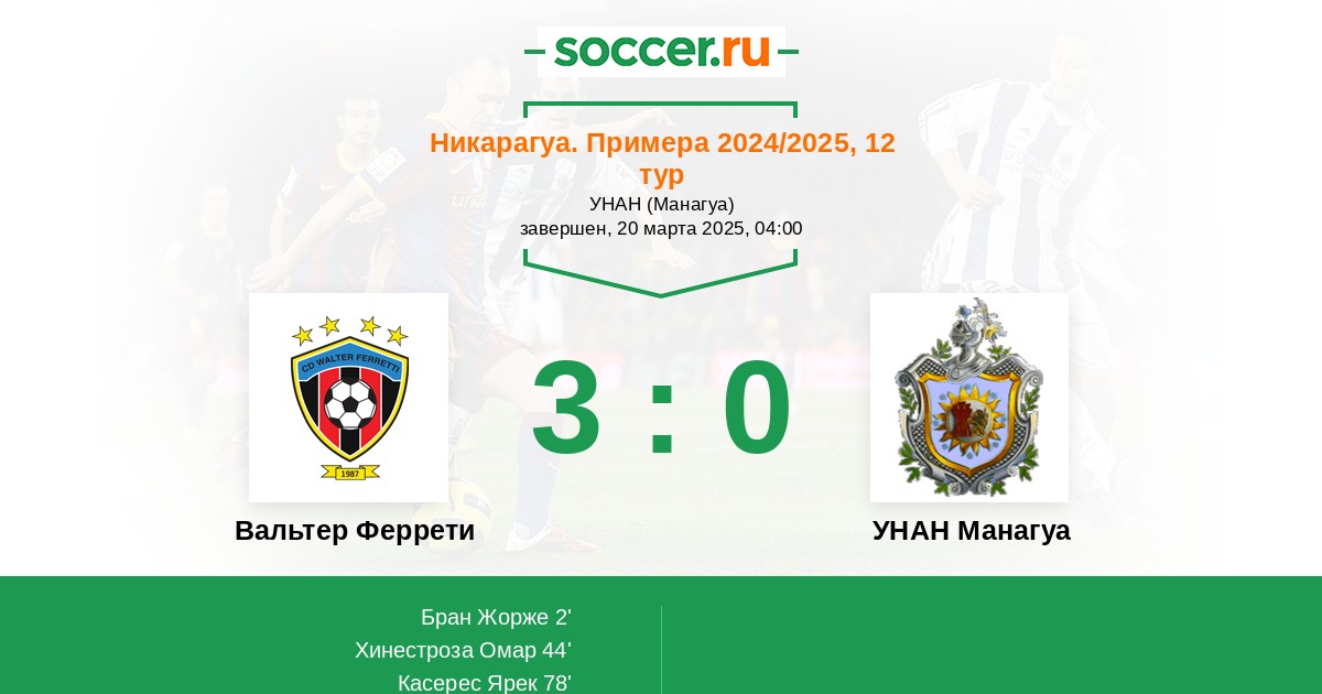 Вальтер Феррети - УНАН Манагуа: обзор матча 20 марта 2025