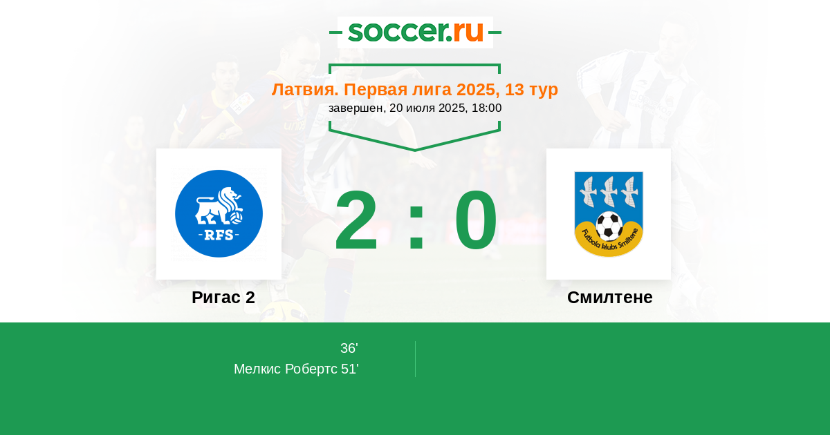 Ригас 2 - Смилтене: обзор матча 20 июля 2025
