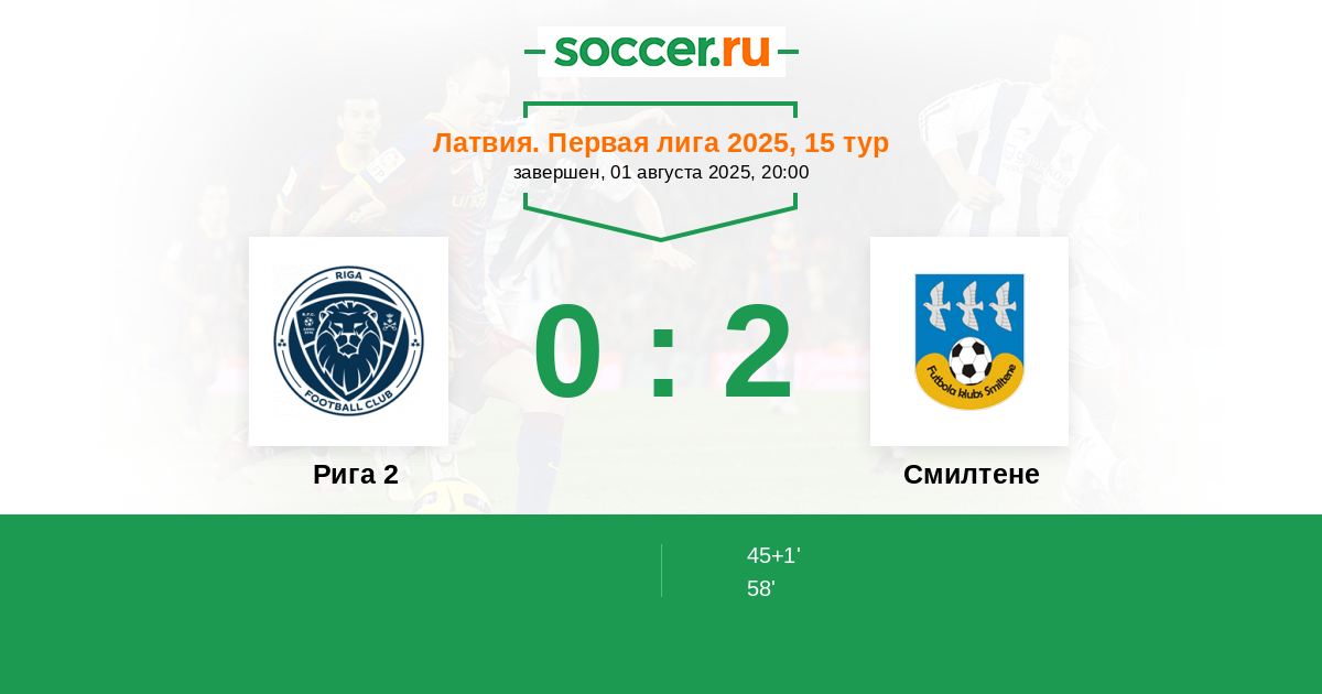 Рига 2 - Смилтене: обзор матча 1 августа 2025