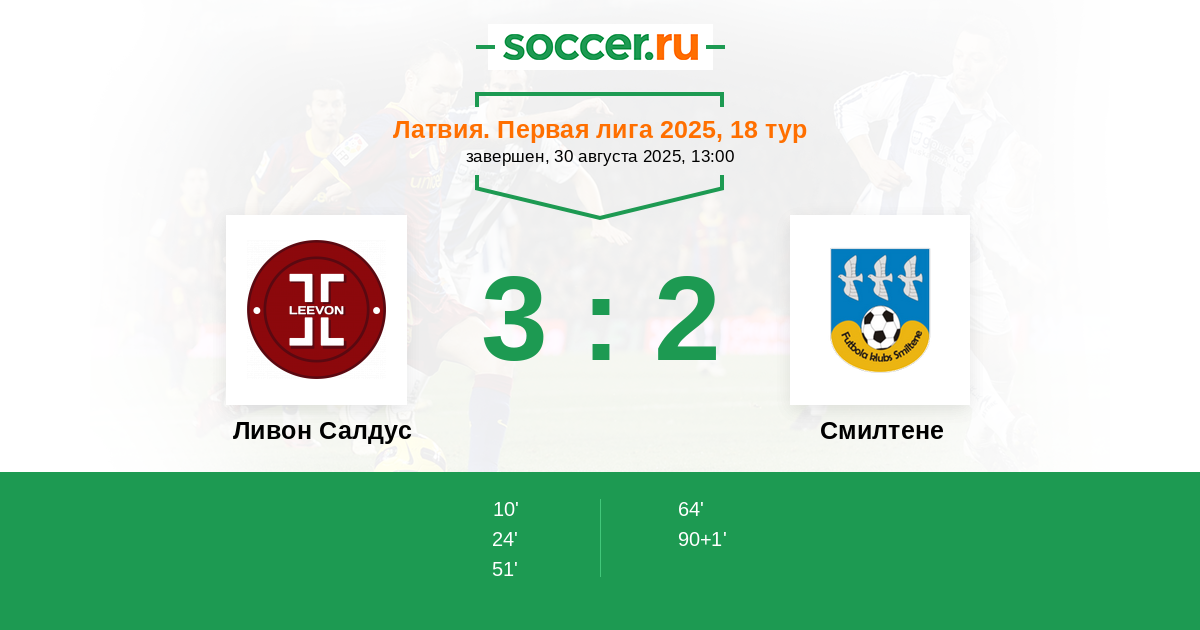 Ливон Салдус - Смилтене: обзор матча 30 августа 2025