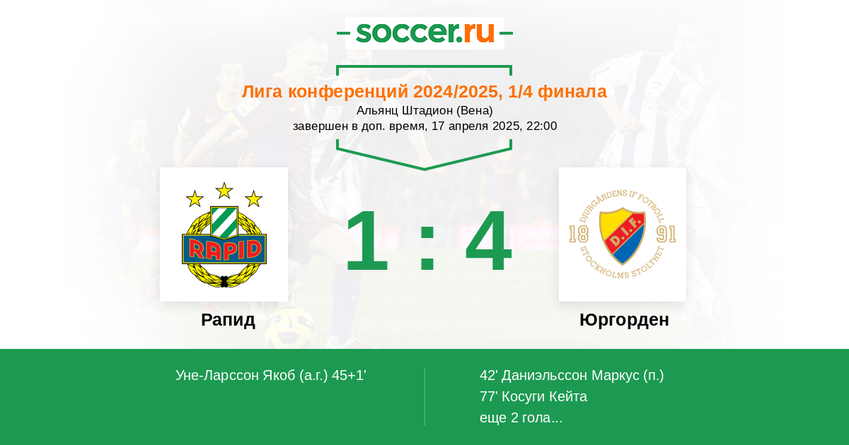 Рапид - Юргорден: обзор матча 17 апреля 2025