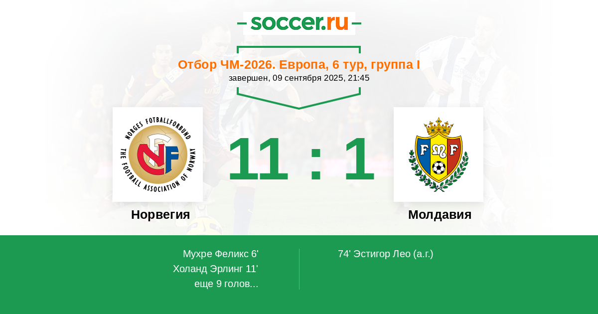 Норвегия - Молдавия: обзор матча 9 сентября 2025