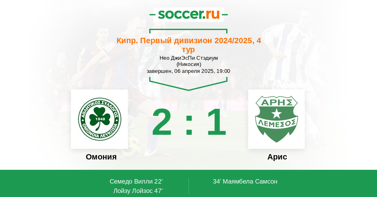 Омония - Арис: обзор матча 6 апреля 2025
