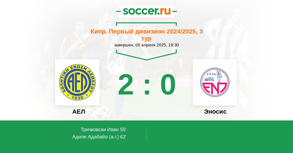 АЕЛ - Эносис: обзор матча 5 апреля 2025