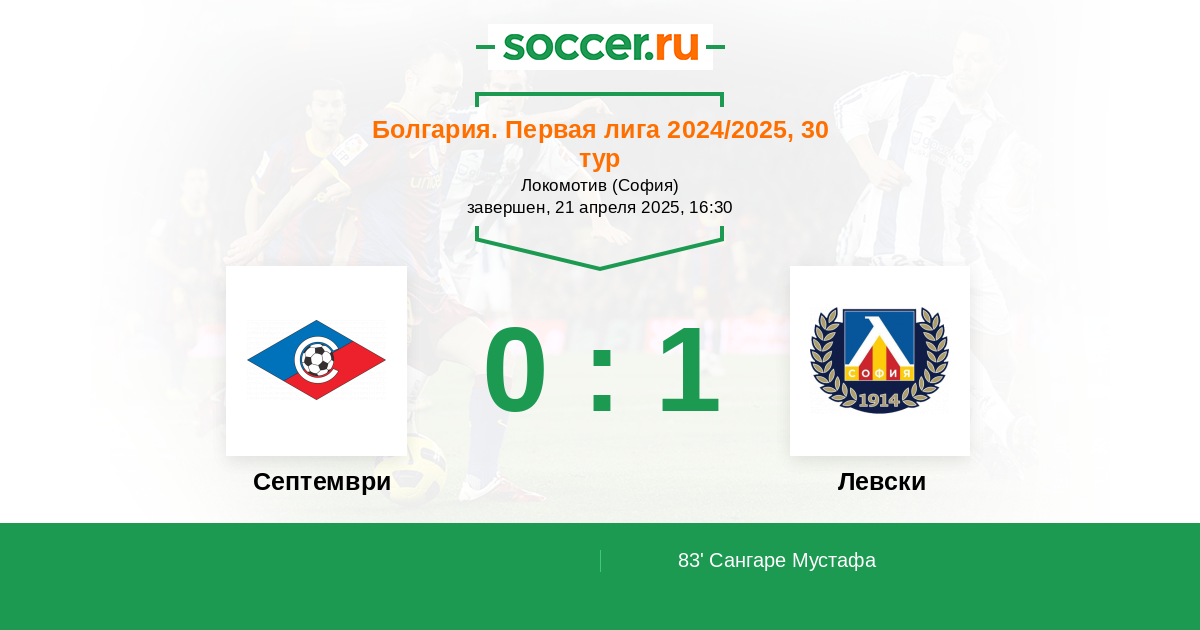 Септември - Левски: обзор матча 21 апреля 2025