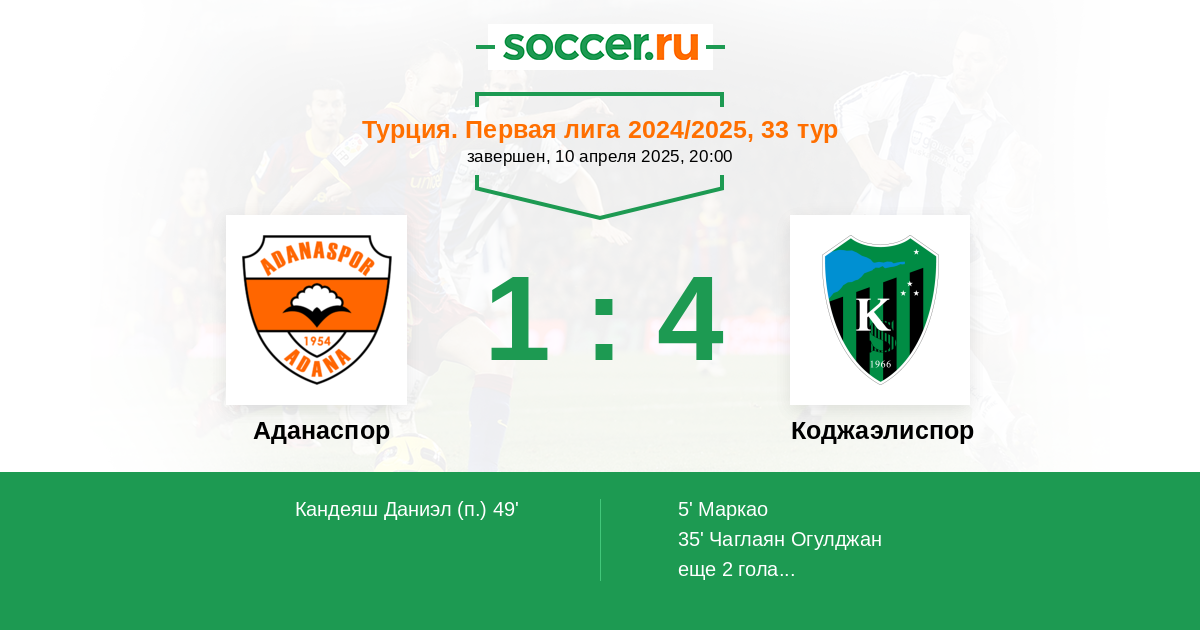 Аданаспор - Коджаэлиспор: обзор матча 10 апреля 2025