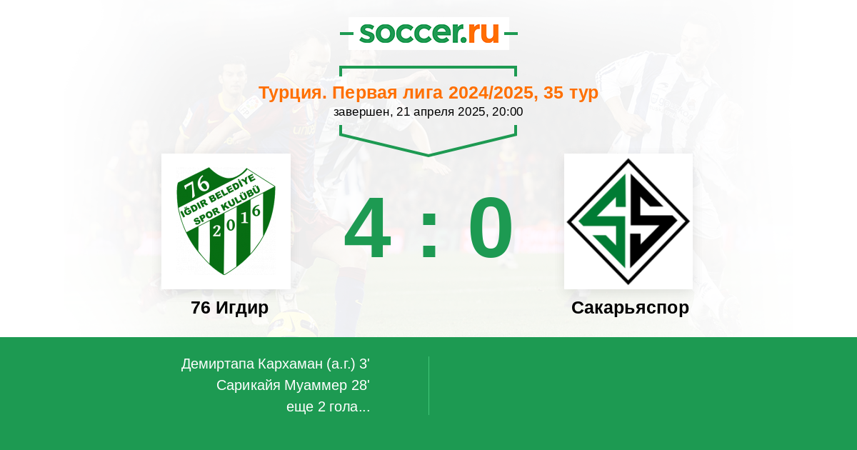 76 Игдир - Сакарьяспор: обзор матча 21 апреля 2025