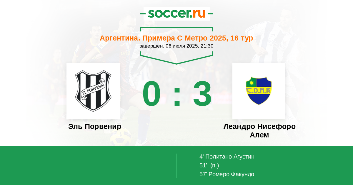 Эль Порвенир - Леандро Нисефоро Алем: обзор матча 6 июля 2025