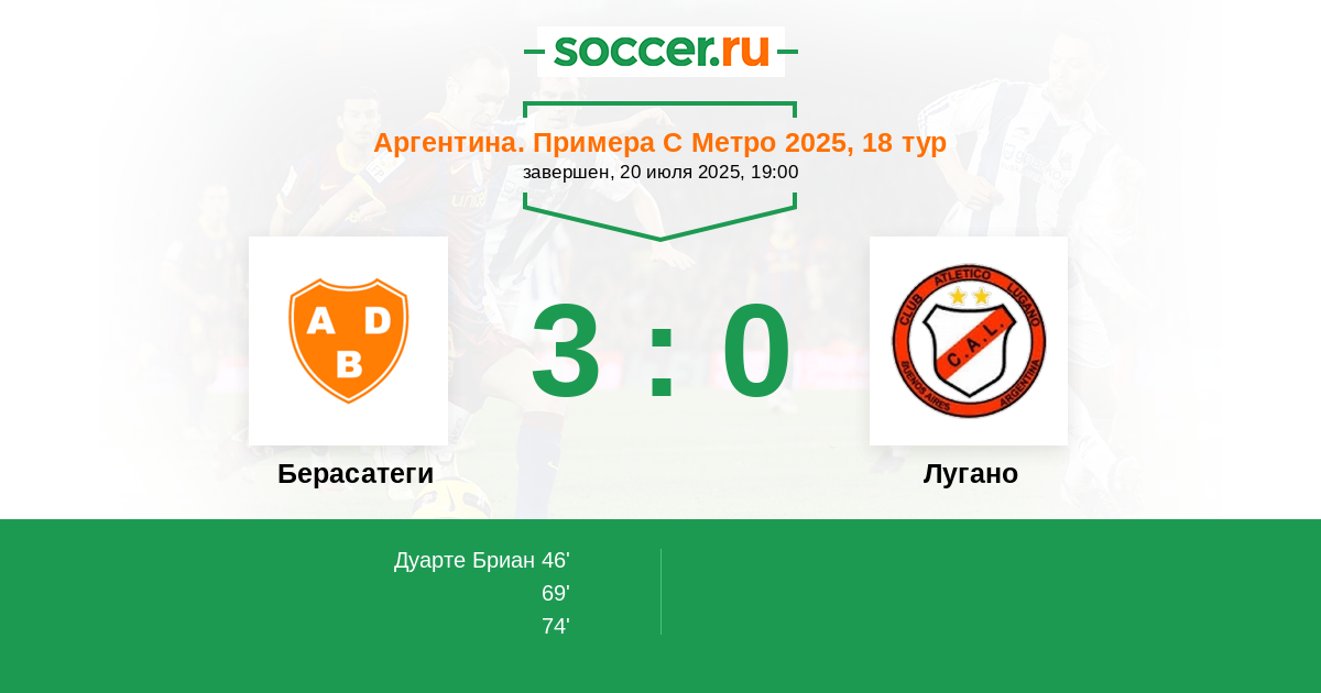 Берасатеги - Лугано: обзор матча 20 июля 2025