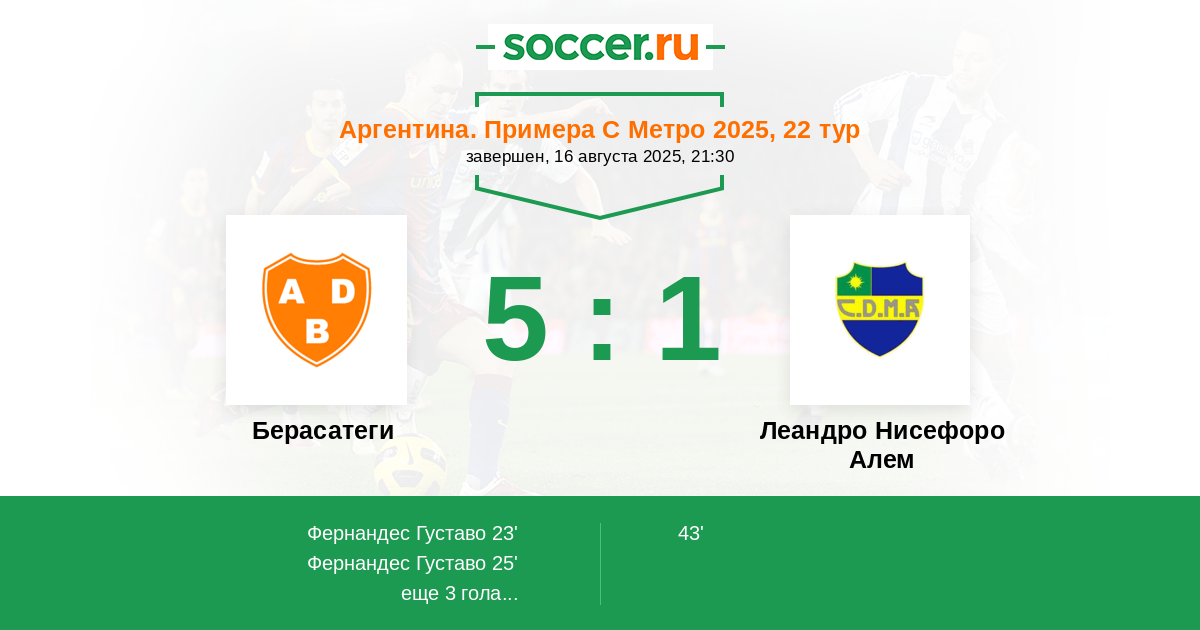 Берасатеги - Леандро Нисефоро Алем: обзор матча 16 августа 2025