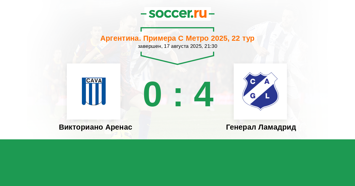 Викториано Аренас - Генерал Ламадрид: обзор матча 17 августа 2025