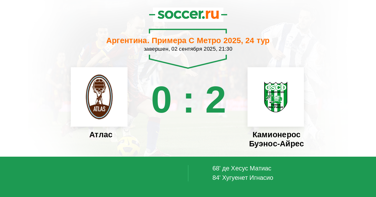 Атлас - Камионерос Буэнос-Айрес: обзор матча 2 сентября 2025