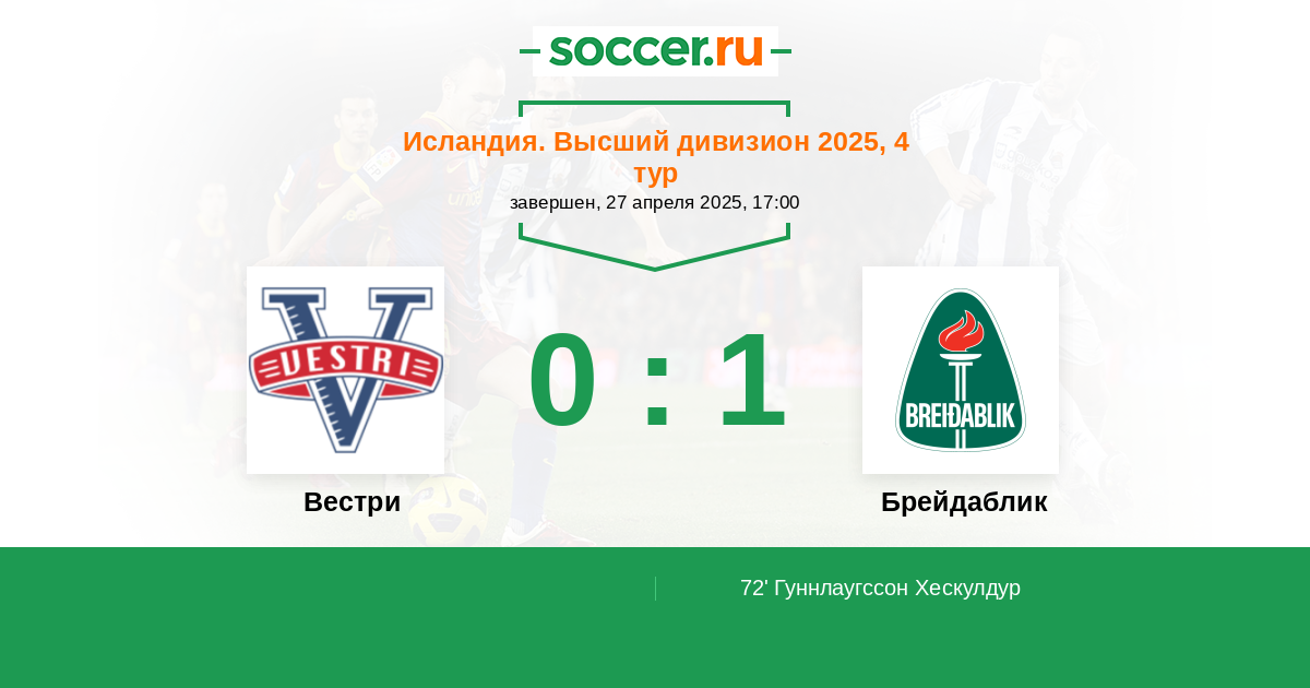 Вестри - Брейдаблик: обзор матча 27 апреля 2025