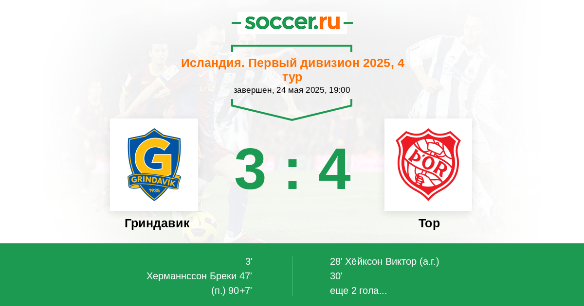 Гриндавик - Тор: обзор матча 24 мая 2025