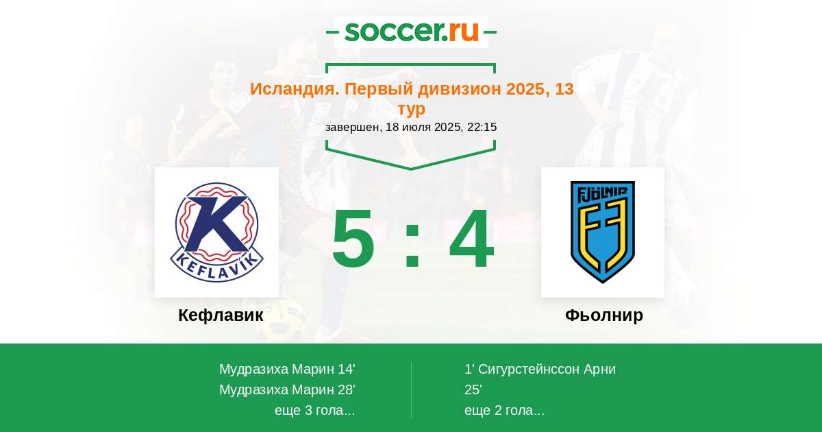 Кефлавик - Фьолнир: обзор матча 18 июля 2025